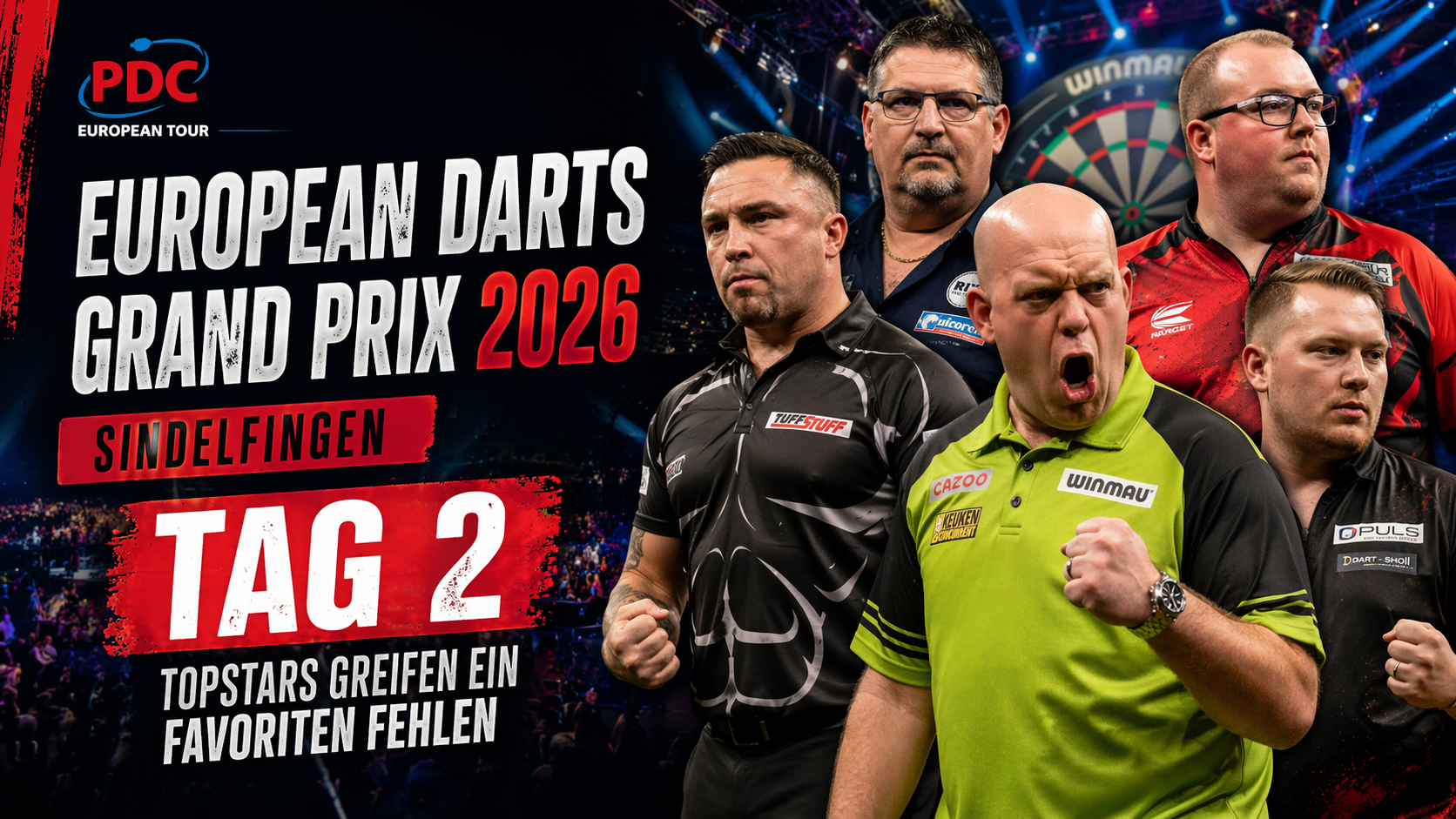 Tag 2 beim European Darts Grand Prix 2026 in Sindelfingen bringt die erste echte Standortbestimmung für die Topstars – und das ohne die beiden dominierenden Namen der letzten Monate. Im Sindelfinger Glaspalast beginnt am Samstag die erste entscheidende Phase des European Darts Grand Prix 2026. Nach einem Auftakt mit ersten Überraschungen steigen an Tag 2 (18.04.) die gesetzten Spieler ins Turnier ein – darunter Michael van Gerwen, Gerwyn Price, Stephen Bunting, Gian van Veen und Titelverteidiger Gary Anderson. Damit fehlt dem Turnier eine klare Spitze im Feld – und genau das verändert die Ausgangslage dieses Wochenendes deutlich.