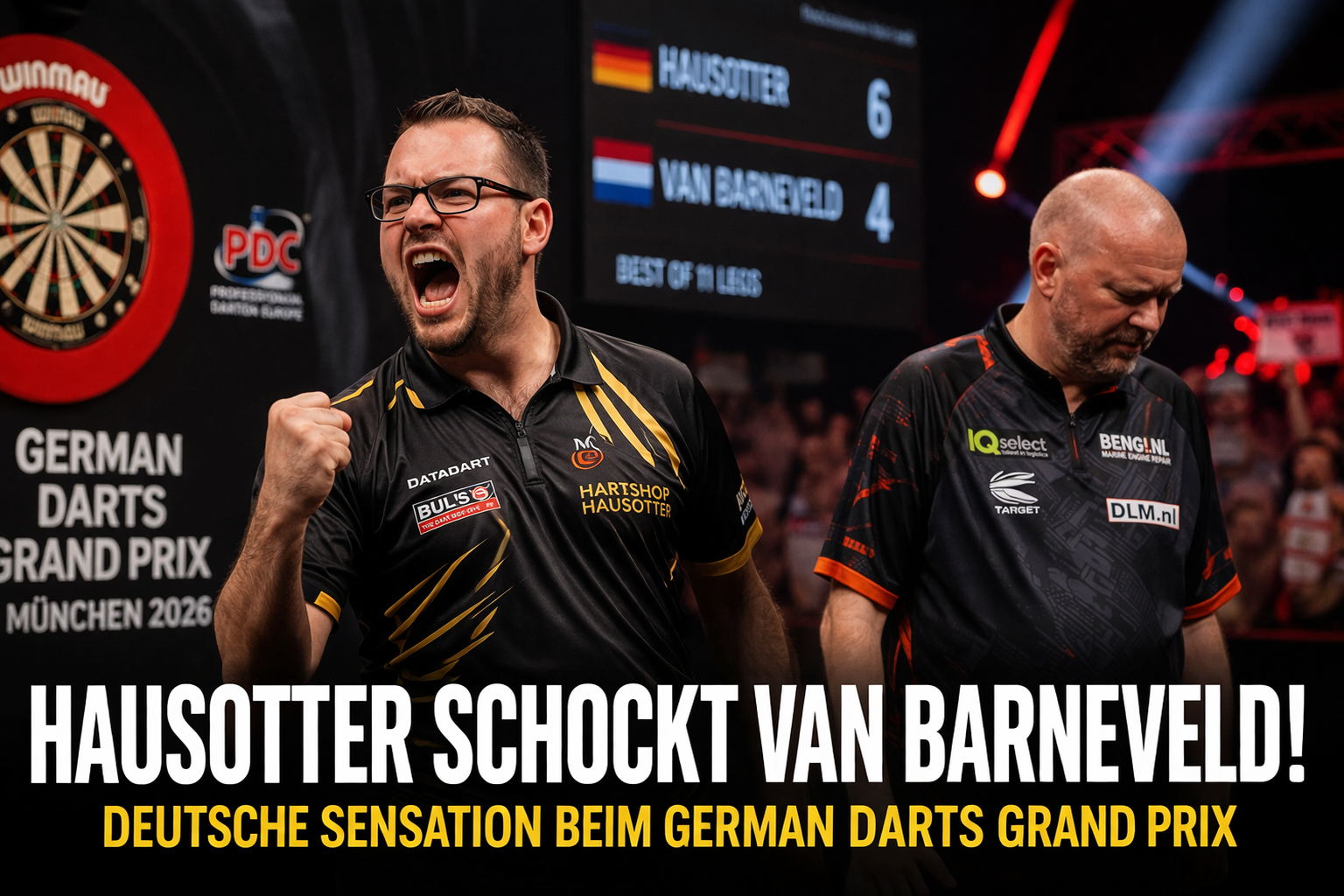 Der erste Turniertag (04.04.) beim German Darts Grand Prix 2026 hat seine große Geschichte – und sie kommt aus deutscher Sicht. Marcel Hausotter besiegte Raymond van Barneveld mit 6:4 und sorgte damit für die größte Überraschung der ersten Runde. Ein Sieg, der nicht nur wegen des Namens des Gegners Gewicht hat – sondern auch wegen der Art und Weise.